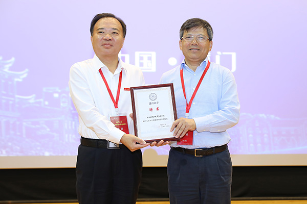 仪式上,学校敦聘陈纯为厦门大学人工智能研究院名誉院长。张彦代表学校向陈纯颁发聘书。