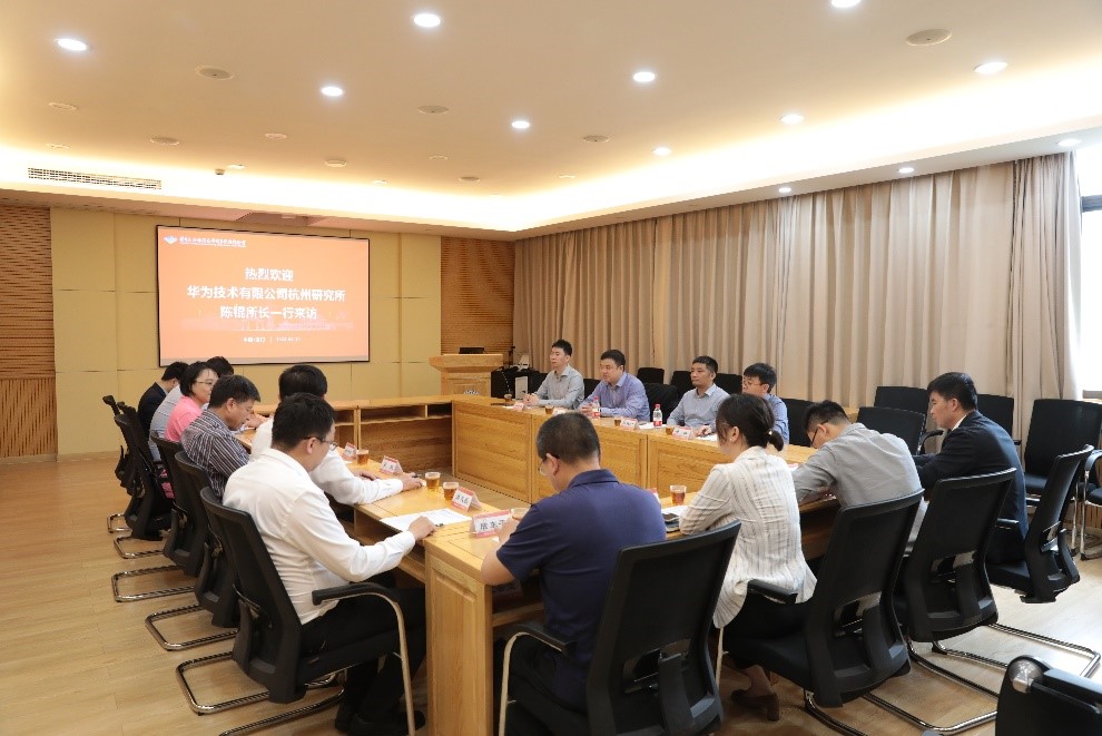 4月20日下午,华为杭州研究所陈锟所长带队莅校调研我校科技创新情况并开展科技合作交流。江云宝副校长会见了陈锟所长一行,中科院院士孙世刚教授出席活动。